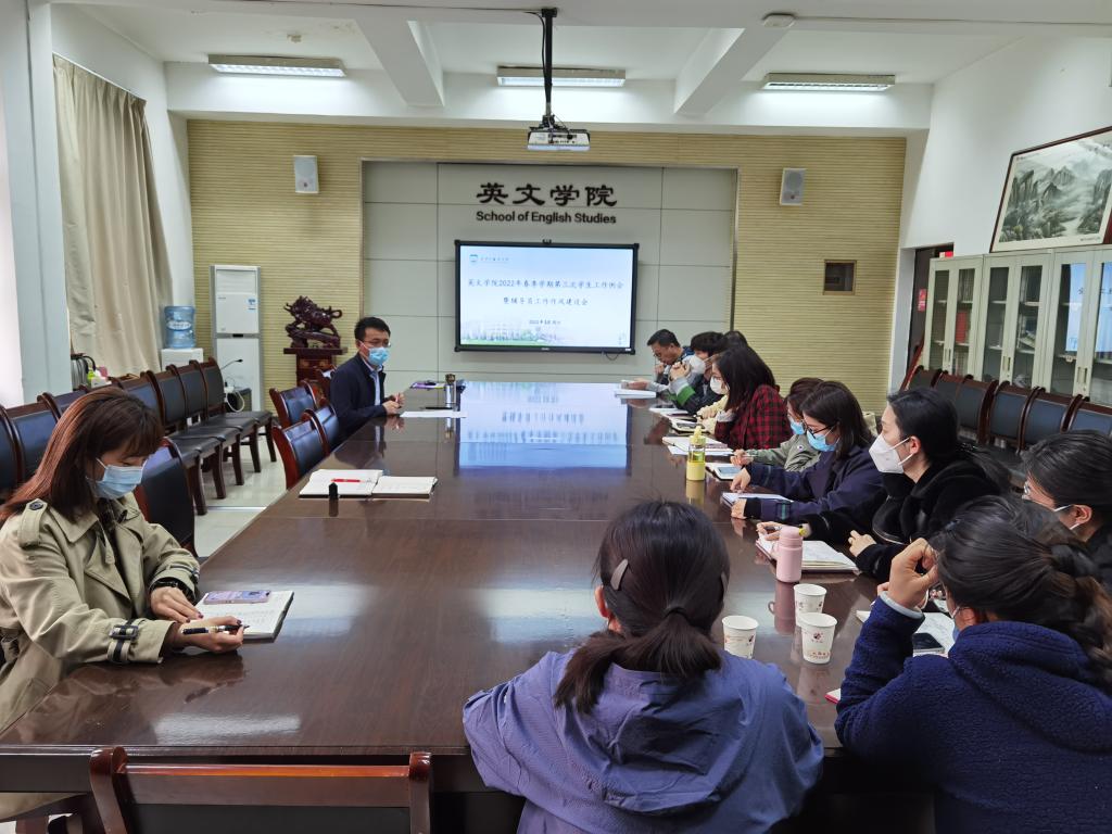 为进一步激励辅导员努力提高综合素质和职业素养,不断加强辅导员队伍作风建设,3月30日下午,太阳成集团官网在长安校区教学楼G209召开2022年春季学期第三次学工例会暨辅导员工作作风建设会,学院党委副书记马文静、学工秘书李哲和全体辅导员参加了会议,会议由马文静主持。